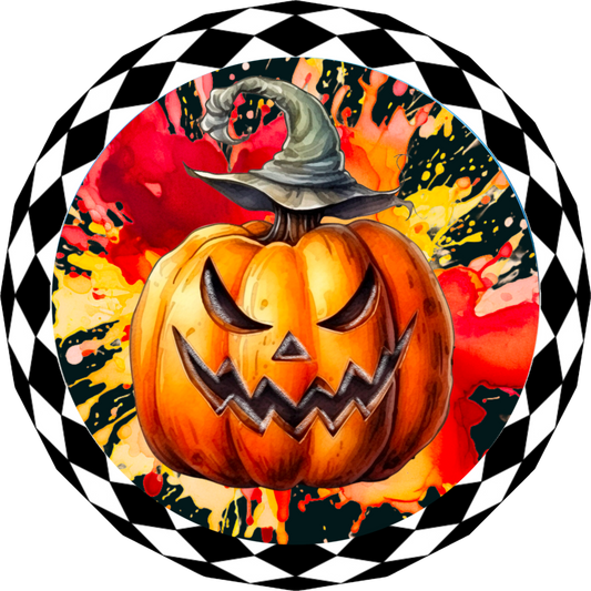 Halloween Pumpkin Wreath Sign – Spooky Jack-o'-Lantern Round Door Decor – 10" or 11.75