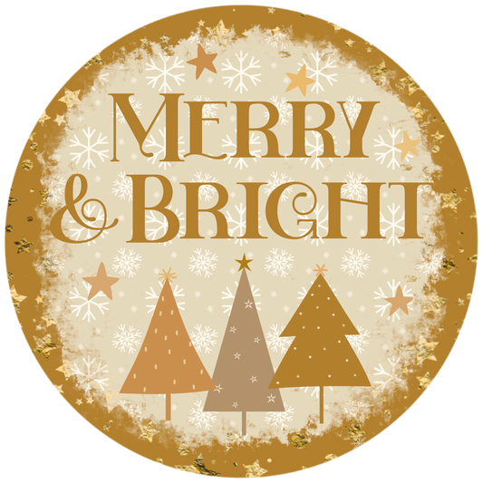 "Merry & Bright" Christmas Wreath Sign - Festive Holiday Decor - Gold and Beige Accents - 6”, 8”10" or 11.75" Round