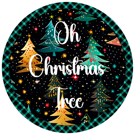 "Oh Christmas Tree" Wreath Sign - Festive Holiday Decor - Colorful Tree Design - 10" or 11.75" Round