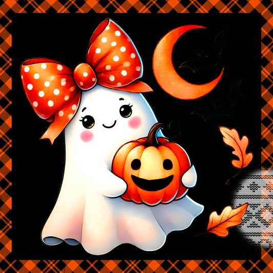Adorable Ghost with Pumpkin 10" Square Wreath Sign - Cute Halloween Decor - Spooky Season Decoration