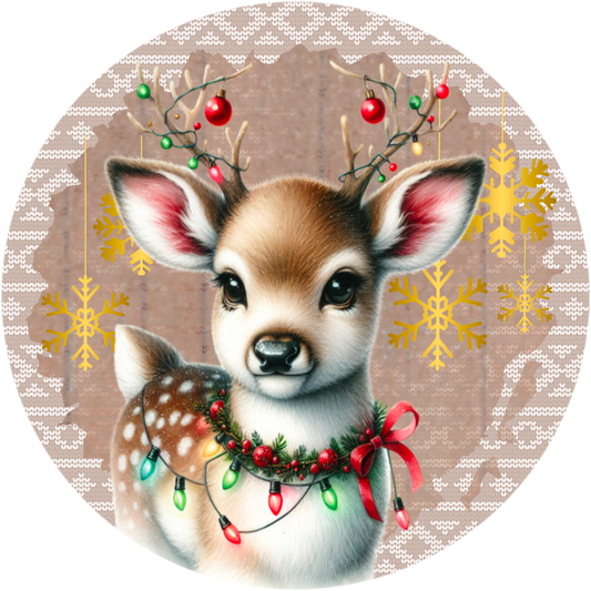 Adorable Reindeer with Christmas Lights Round Wreath Sign - Available in 6", 8", 10" and 11.75" - Festive Holiday Decor