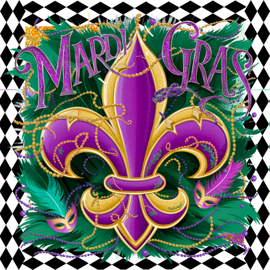 Bold Mardi Gras Fleur-de-Lis Wreath Sign - 10” Square Custom Wall Decor by MilandDil Designs
