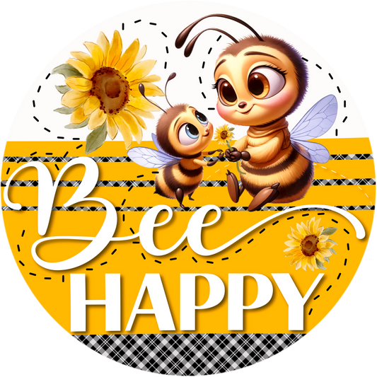 Bee Happy Wreath Sign with Bees and Sunflowers