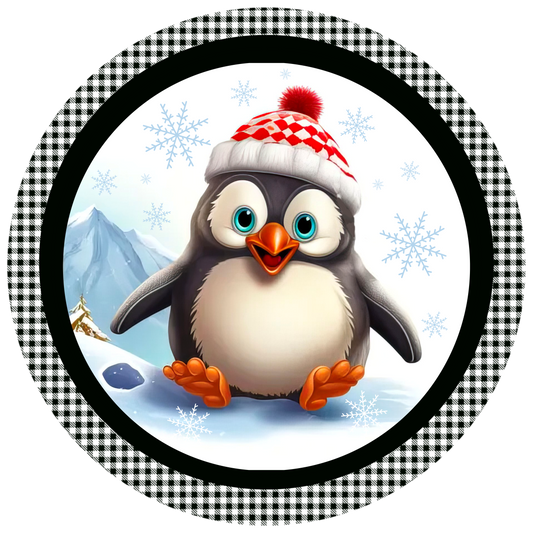 Cute Winter Penguin Sublimated Wreath Sign - Adorable Christmas Decor