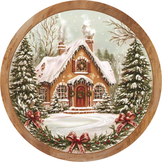 Cozy Christmas Cottage Wreath Sign with Rustic Wood Border - Winter Holiday Decor