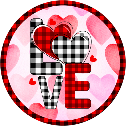 Buffalo Plaid LOVE Metal Sign - Valentine’s Day Sublimated Round Decor in 6", 8", 10” & 11.75