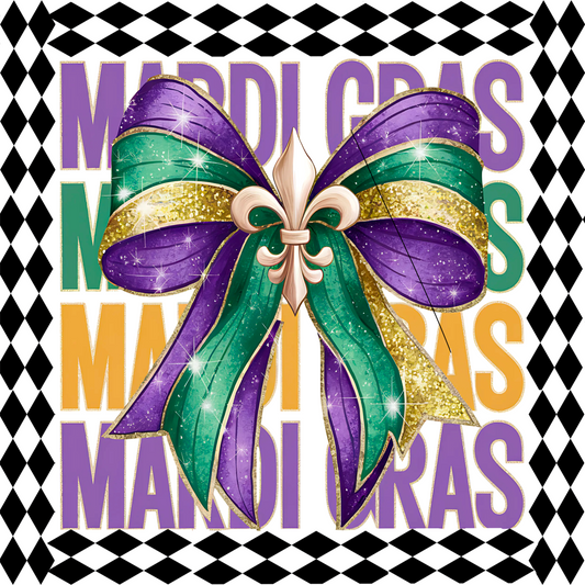 Custom Mardi Gras Coquette Bow Wreath Sign - 10” Square Wall Decor by MilandDil Designs