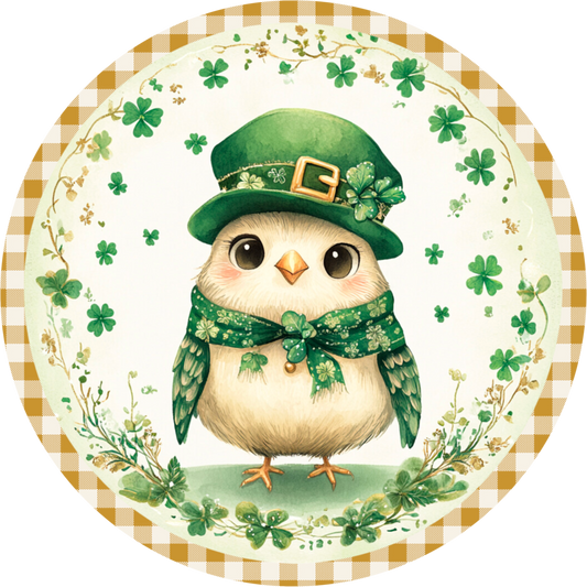Charming Leprechaun Bird Wreath Sign – St. Patrick’s Day Decor – Round Metal Art