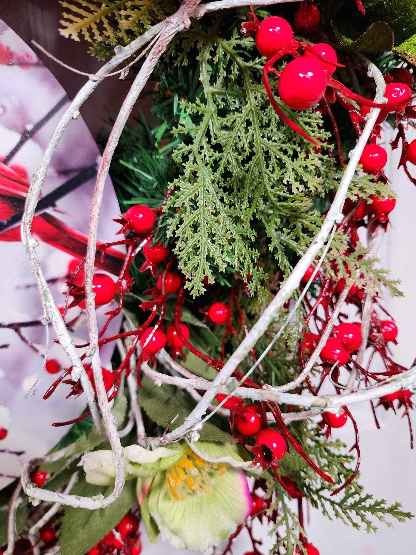Celebrate the holiday season with the timeless beauty and charm of this Cardinal Season's Greetings Wreath, the perfect addition to your Christmas décor!