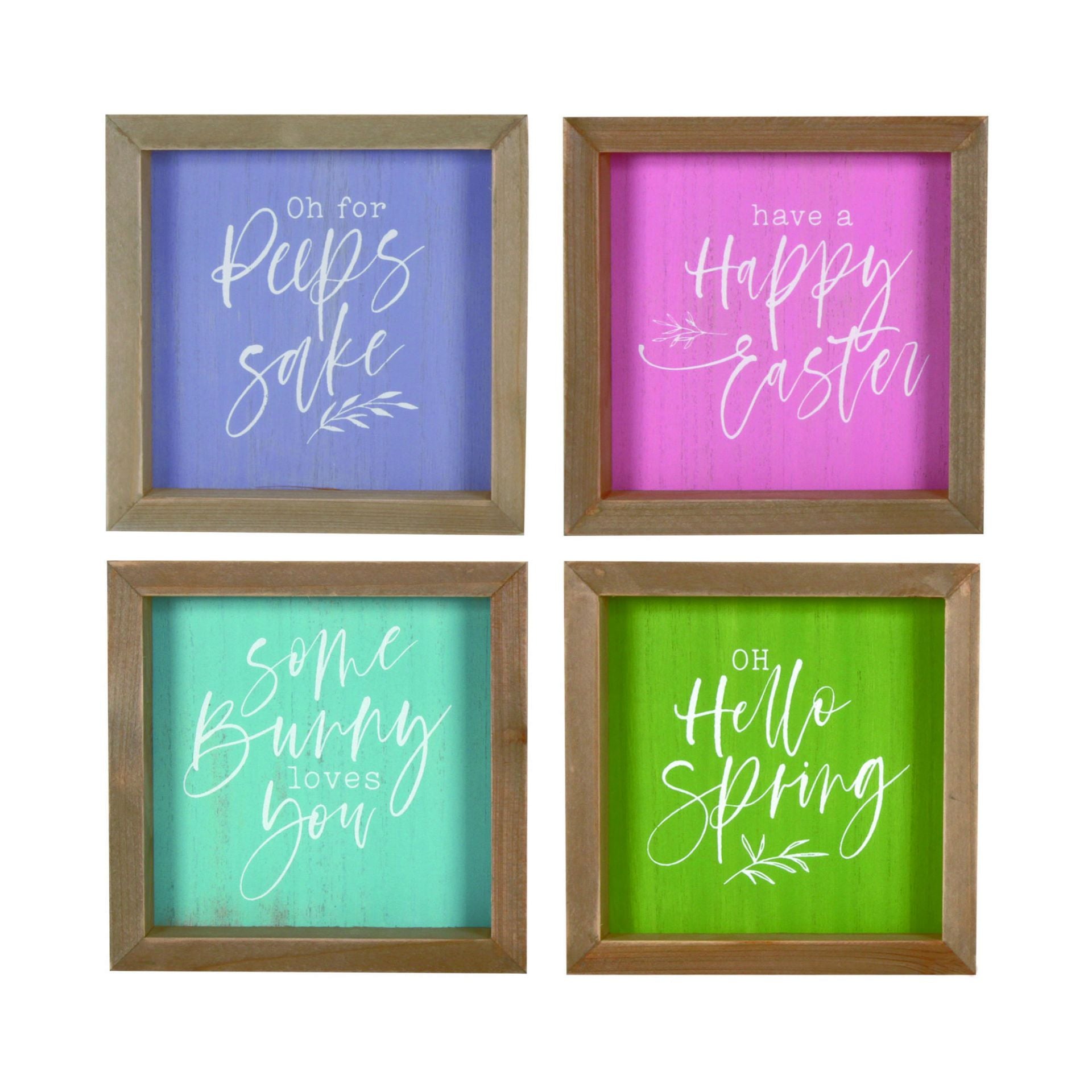 Get ready to 'Hop' into the Easter season with our exclusive Easter and Spring Wood Signs! This vibrant collection of wooden frames in pastel hues can spice up your home décor for the season. With messages like “Oh for Peeps Sake”, “Have a Happy Easter”, “Some Bunny Loves You”, and “Oh Hello Spring” - you're sure to get that cheerfully festive feeling. Whether it's displayed within a wreath as an attachment or used solo to decorate any mantle or shelf, these signs are the perfect way to celebrate the season. And if you're feeling generous, why not give your family and friends a set as a gift this Easter? Get hopping and make sure this springtime is filled with the right vibes!