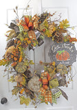 Welcome the harvest season with this exquisite Give Thanks Autumn Wreath and let it bring warmth, gratitude, and beauty to your fall celebrations.