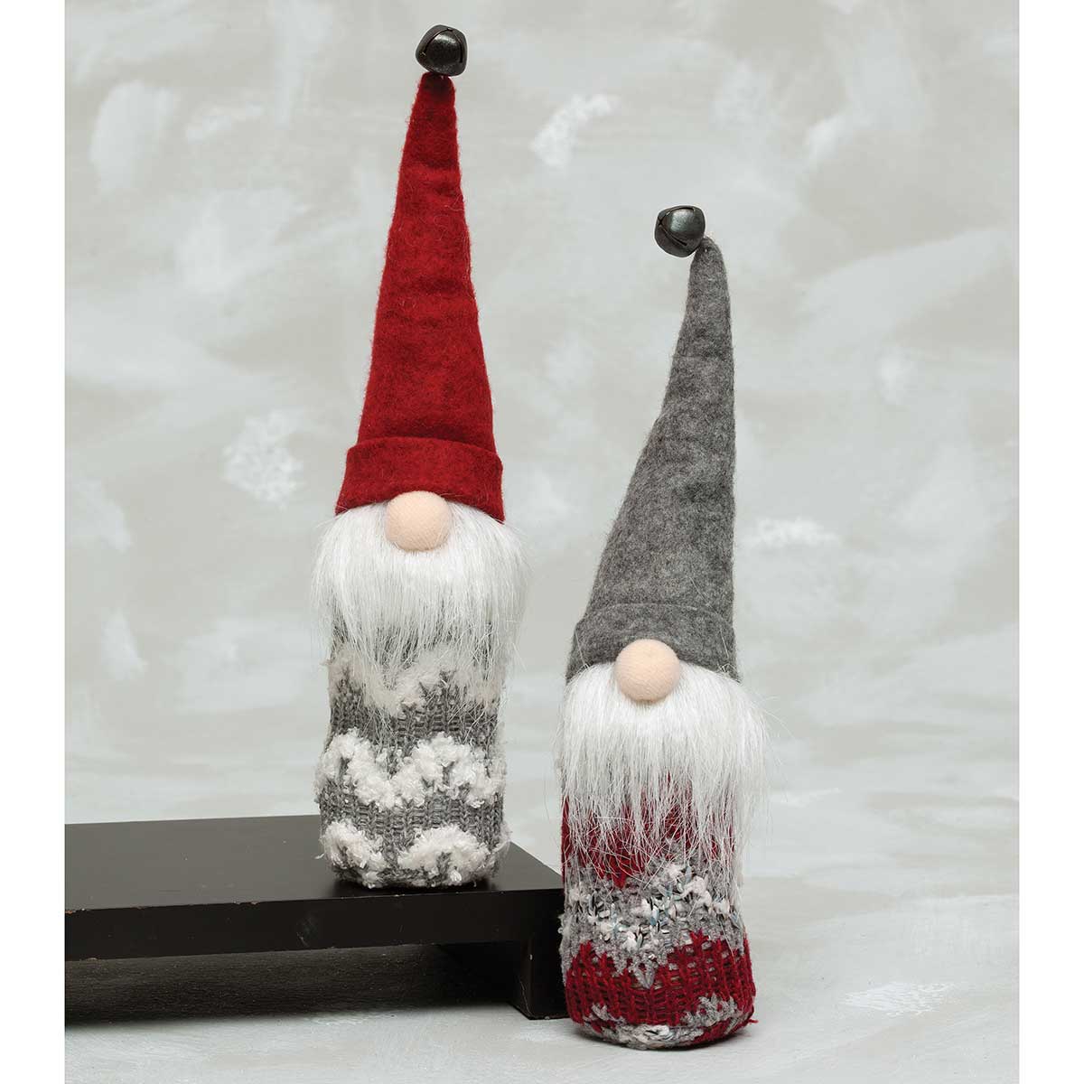 Looking for a little bit of fun and whimsy in your holiday decorating? Then this gnome with chevron body is perfect for you! He comes in either grey or red, and will add a touch of cheerfulness wherever you choose to put him. Whether you use him as part of a wreath or on a shelf, he's sure to bring a smile to your face. Measures 9.5"H.