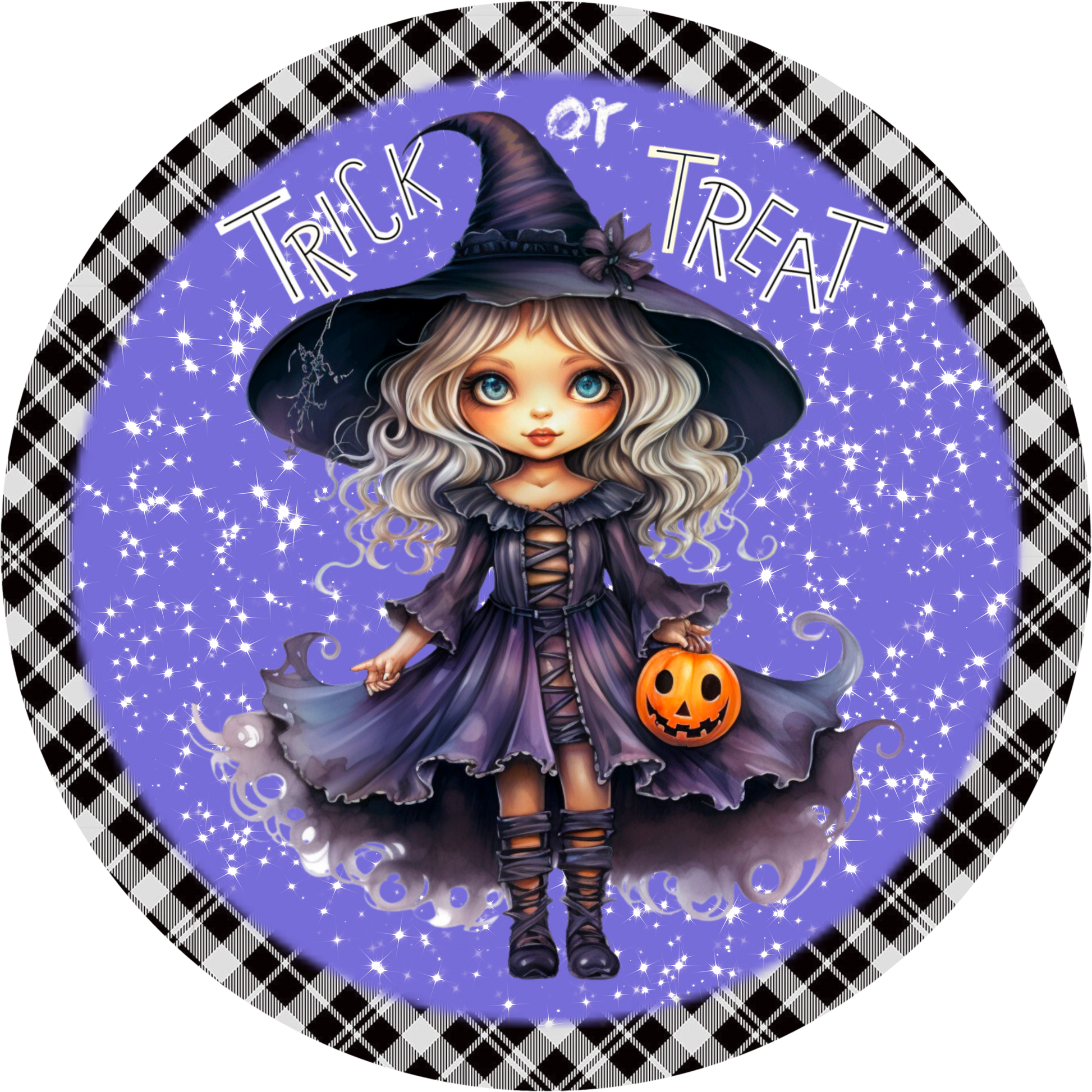 Halloween Trick or Treater Witchy Girl Sublimated Round Sign