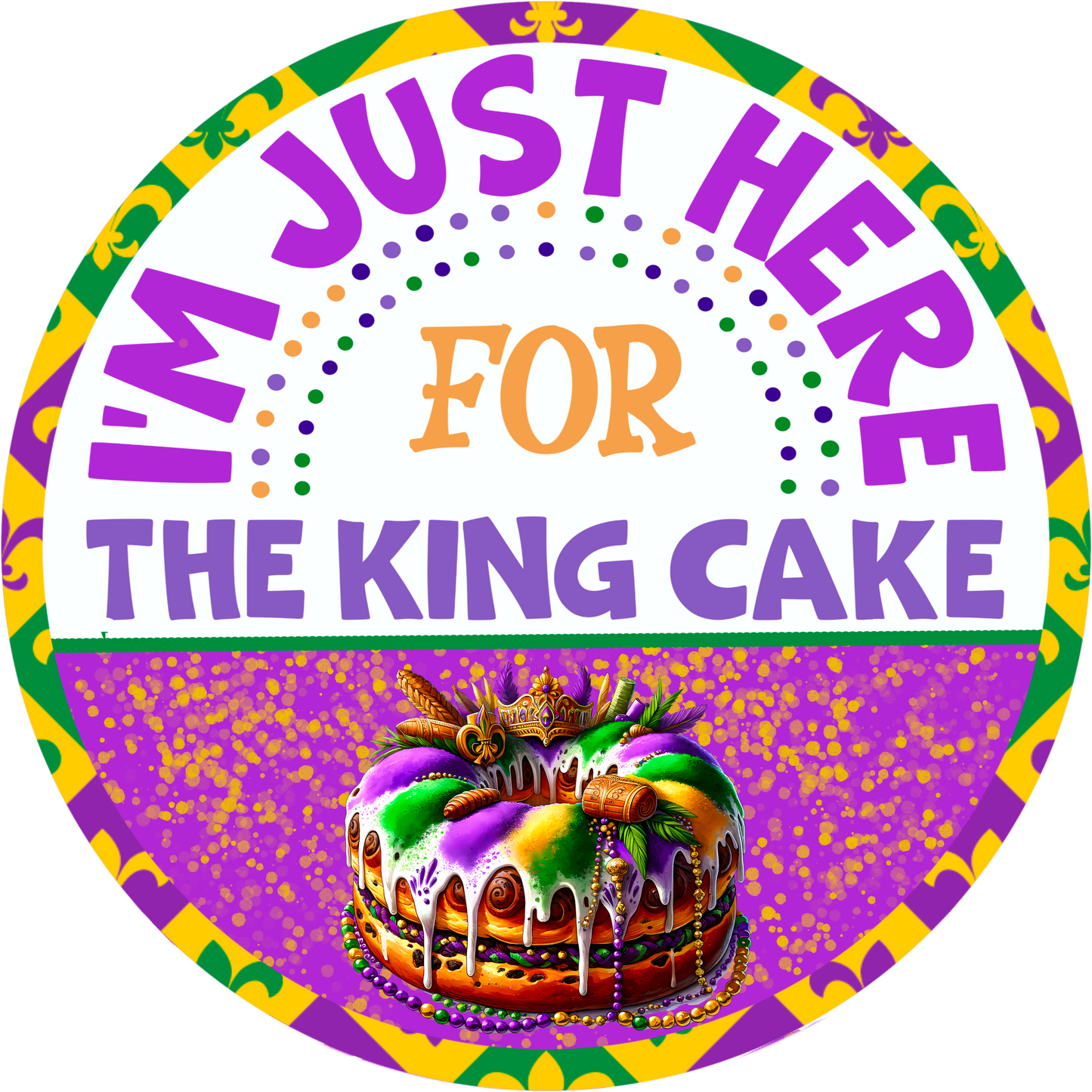 I’m Just Here for the King Cake Mardi Gras Metal Sign - 6", 8", 10” or 11.75” Carnival Decor