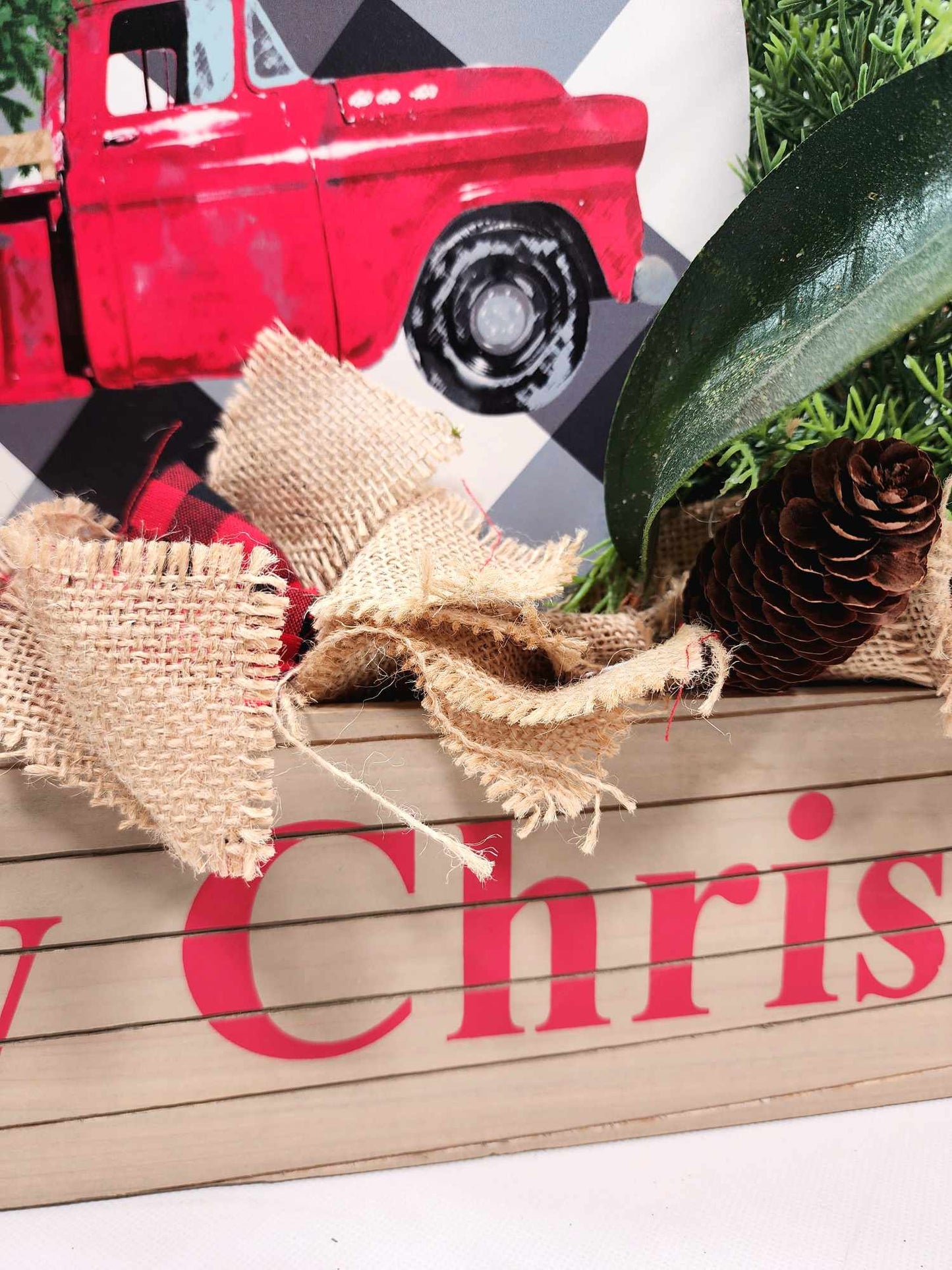 Add this festive Red Truck Farmhouse Arrangement to your holiday décor for a warm and welcoming Christmas season!