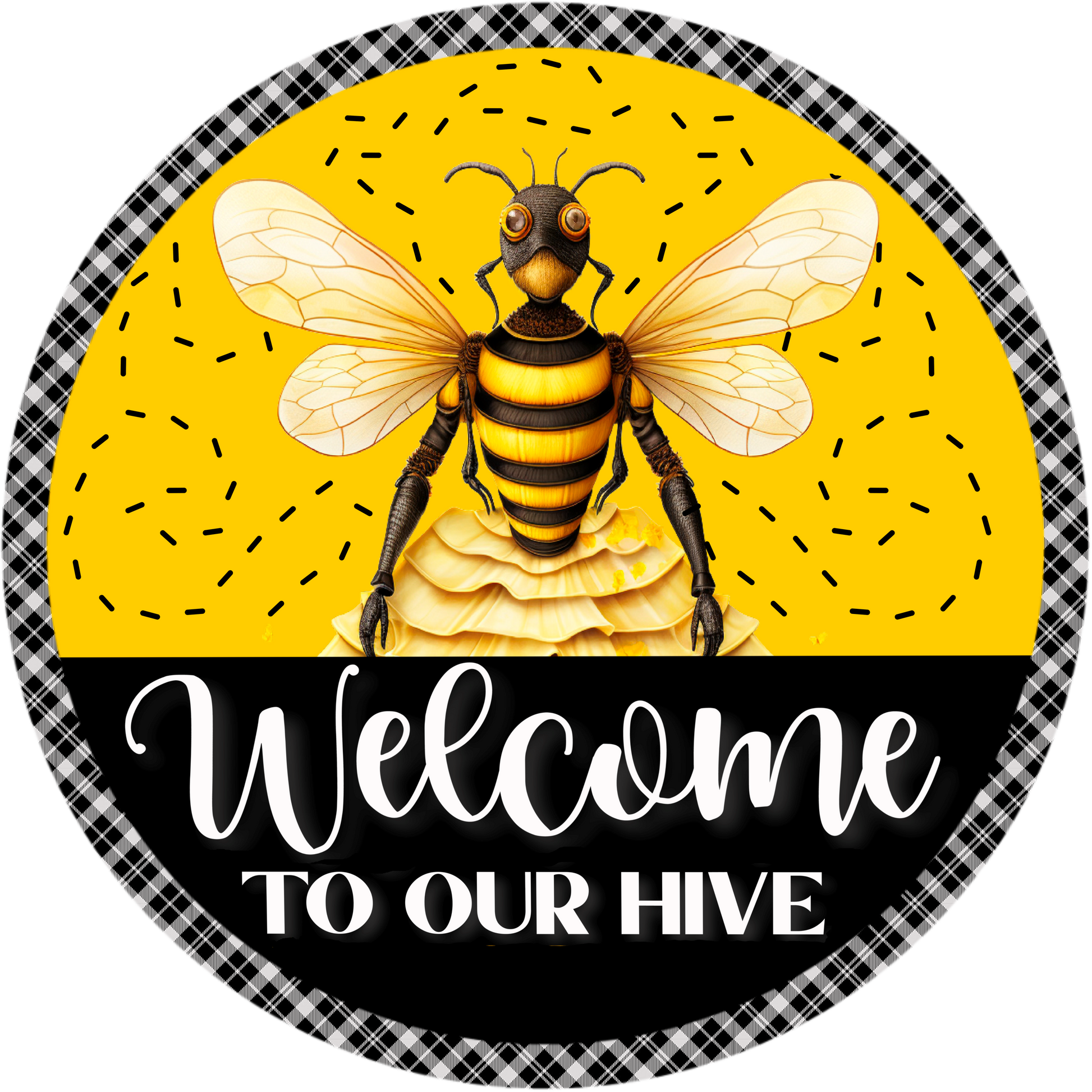 Bring in a breath of fresh air and celebrate the season of bloom with the "Welcome to Our Hive" Round Metal Wreath Sign. This lovingly handcrafted sign serves as a delightful announcement to Spring's arrival, promising to infuse your home with vibrant energy and color. Ideal for both wreath enthusiasts and home decor lovers alike, it makes for a fantastic decoration or a thoughtful gift.