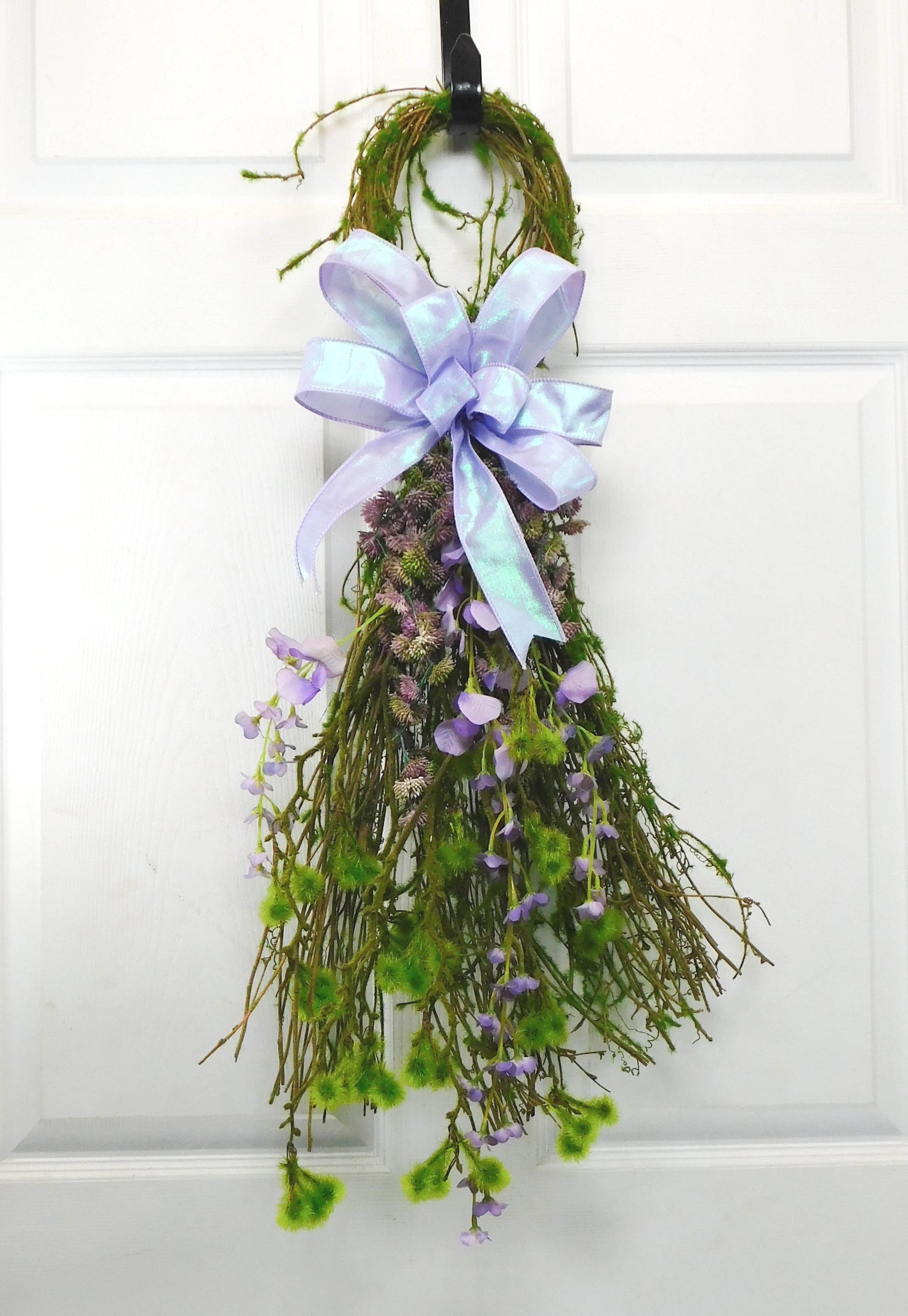 Add a touch of elegance to your home with our Elegant Lavender Grapevine Door Loop. Measuring 30 inches high by 12 inches wide at the widest point, this beautifully crafted door hanger is perfect for bringing the fresh, vibrant charm of spring and summer to your decor.